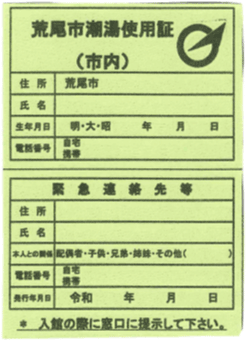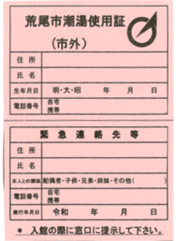 荒尾市潮湯を初めてご利用される方は、万が一の場合に備え緊急連絡先等確認する必要があるため使用申込書の提出が必要です。
